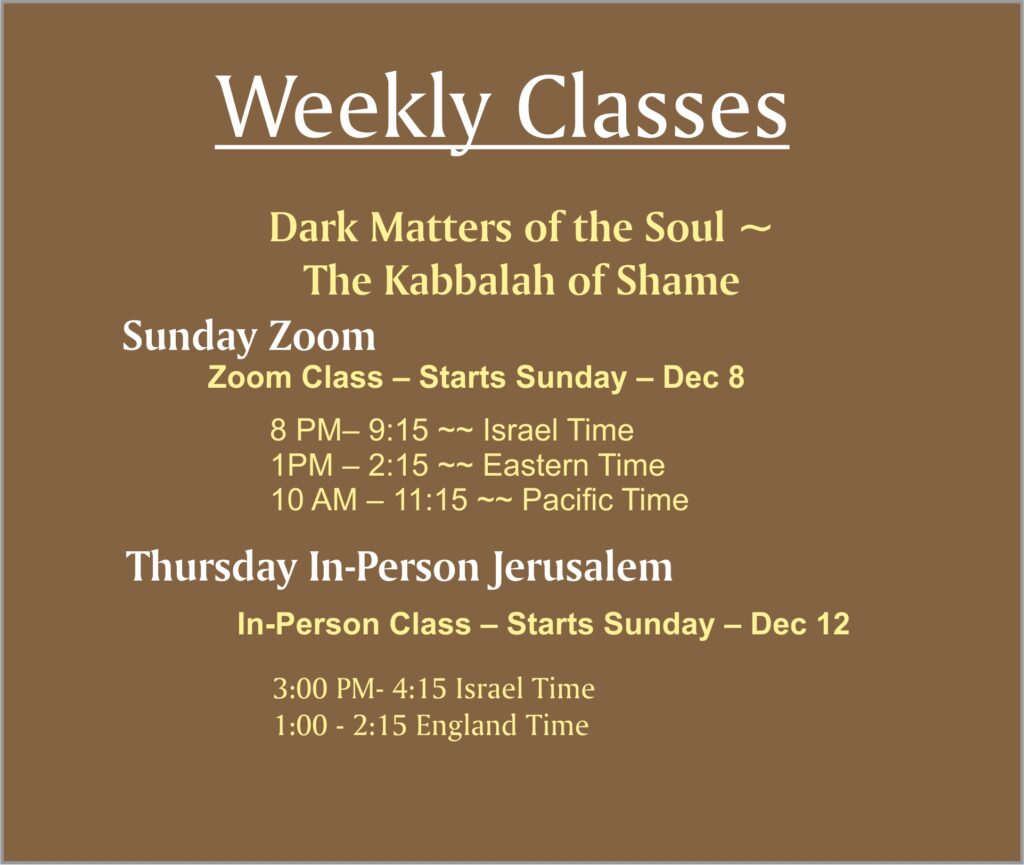 DARK MATTERS OF THE SOUL ~ THE KABBALAH OF SHAME – An exploration of the origin, purpose and mystery of shame as viewed through a Torah lens.